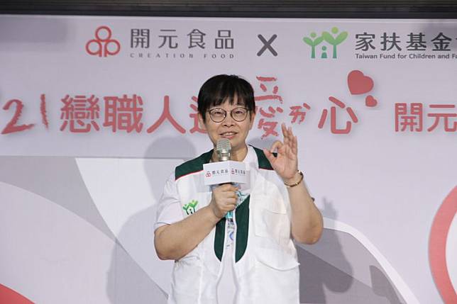 ▲家扶中心執行長何素秋感謝開元食品40年的事業就有三分之一是為公益付出,真的很不容易,是很不凡的意義。(圖/記者鄭志宏攝)