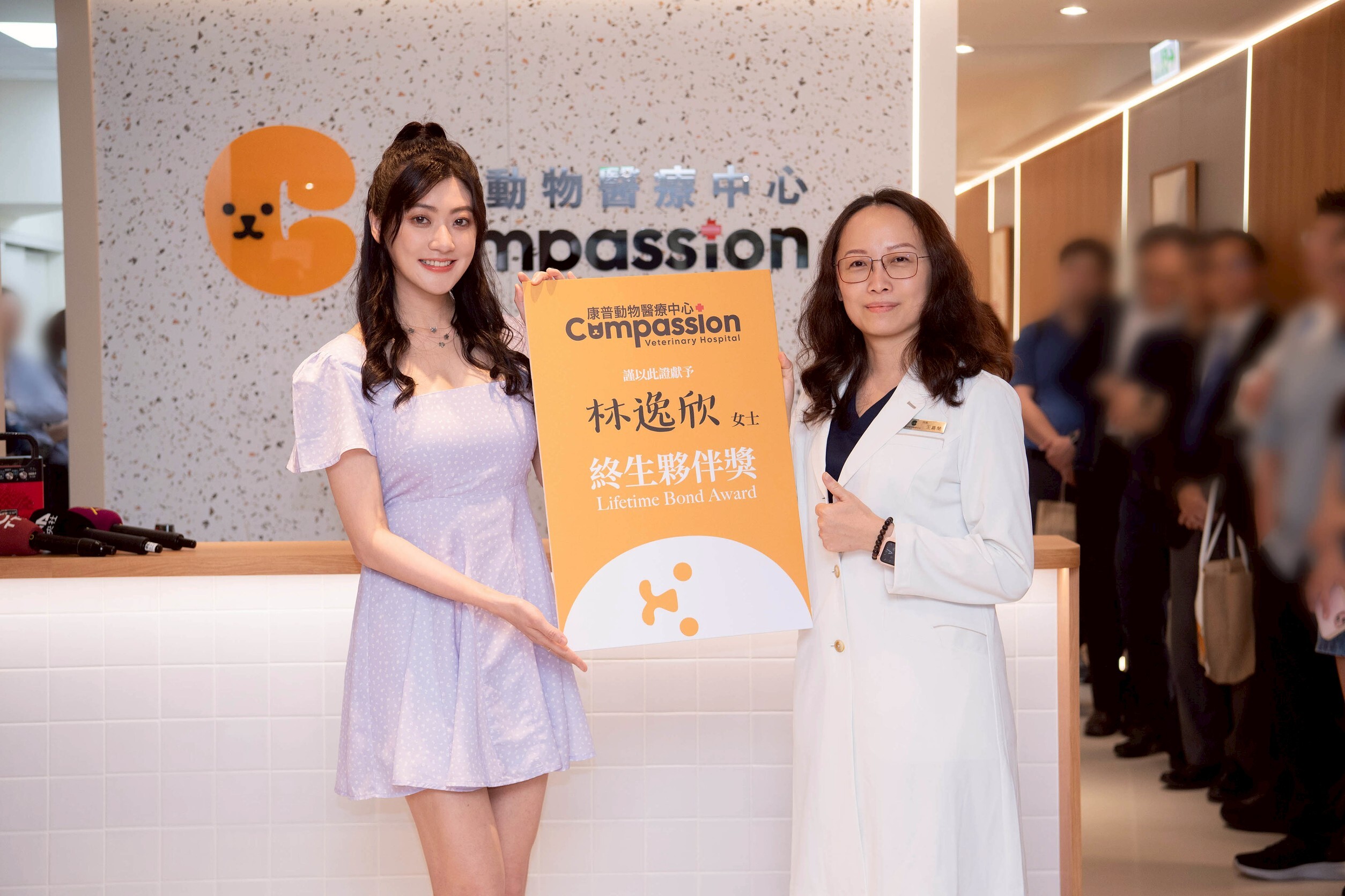 ▲ 音樂才女林逸欣今(22日)受邀擔任康普動物醫療中心開幕嘉賓,並獲頒終身健檢VVIP。(圖/康普動物醫療中心)