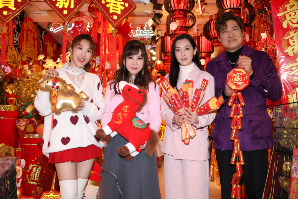 ▲ 龍千玉領軍謝金晶、楊哲、陳淑萍逛春聯大街,迎金馬好彩頭。(圖:豪記唱片)