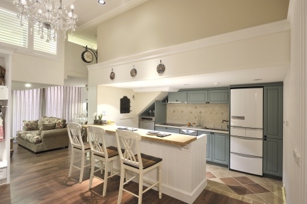 廚房靠近樓梯位置的側面,特別訂製收納,滿足因樓梯產生的畸零空間,而位於廚房對面的牆面,因屋主有展示商品的需求,因此將整面牆打造成展示收納櫃牆,並採用門片、開架與抽屜三種不同形式,滿足屋主需要兼顧展示與收納的需求。圖片提供©上陽設計