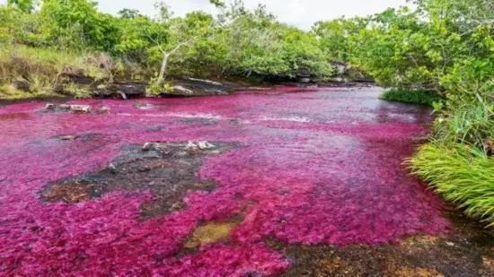在哥倫比亞有一條名叫Canon Cristales的河流,這條河長約100公里,位於安第斯山脈東部。在特定的月份,由於水草的生長,這條河的河床會呈現出一番五彩斑斕的景象,匯集了紅色、藍色、黃色、橘色、綠色等,鮮艷明媚且深淺不一。它也因此得名「彩虹河」。