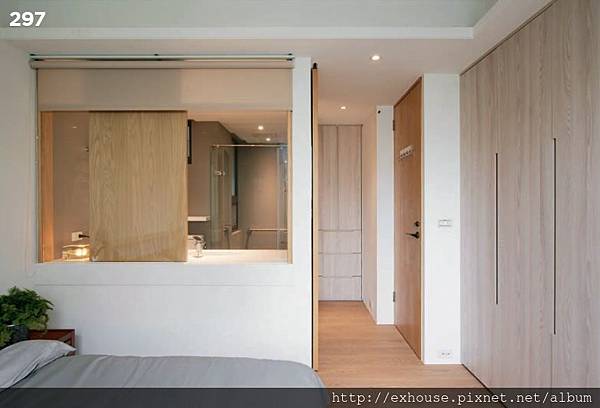 而且為解決封閉衛浴空間的採光,將臨主臥牆改為半開放式玻璃隔間,
