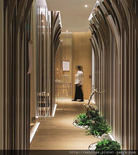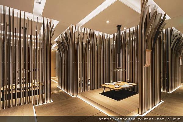 彷彿漫步於竹林之間,各區域交錯排列,同時搭配燈帶將